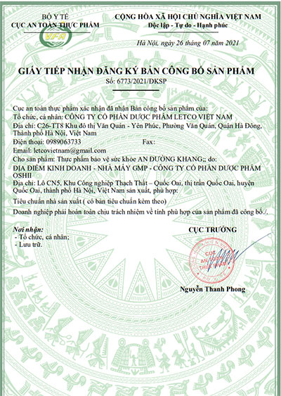 Ngoài ra thì sản phẩm này cũng đã được kiểm định kỹ lưỡng về chất lượng, được kiểm duyệt kỹ lưỡng về các khâu sản xuất và được bộ y tế cấp phép lưu hành.