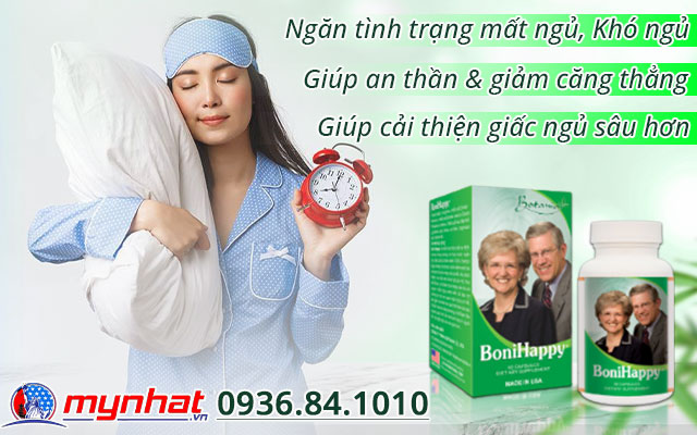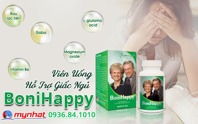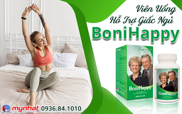 BoniHappy là sản phẩm hỗ trợ giấc ngủ tự nhiên cho người bị chứng mất ngủ, khó ngủ, hay rối loạn giấc ngủ và có nguồn gốc từ Mỹ. Sản phẩm này có tác động tốt tới hệ thần kinh giúp mang lại cho người dùng giấc ngủ ngon, thoải mái và tinh thần được thư giãn để có thể làm việc đạt năng xuất cùng hiệu quả tốt nhất.