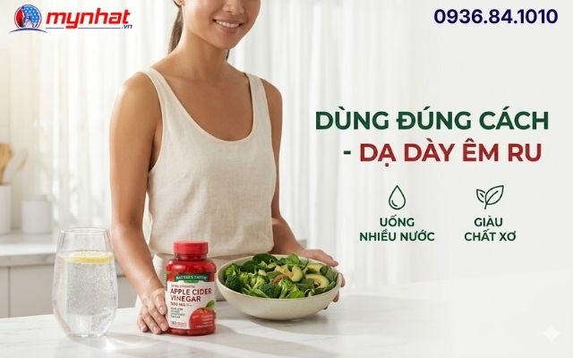 Viên nang Nature's Truth Apple Cider Vinegar 1200mg chứa bột dấm táo cô đặc. Để hoạt chất này tan rã và hấp thụ một cách êm dịu nhất, bạn cần uống kèm ít nhất 250ml - 300ml nước lọc. Nước đóng vai trò là dung môi trung hòa độ acid, giúp bảo vệ lớp niêm mạc dạ dày khỏi sự kích ứng trực tiếp.