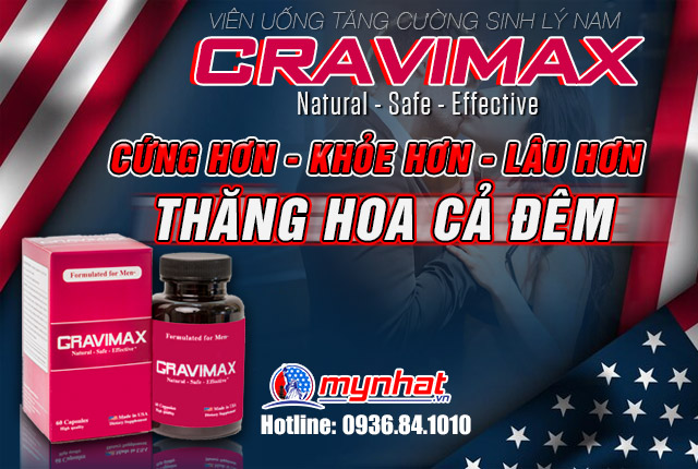 Cravimax là một loại thực phẩm chức năng có nguồn gốc từ Hoa Kỳ. Có tác dụng hỗ trợ nam giới tăng cường khả năng tinh binh, tăng cường sức khỏe và cải thiện tần suất khi quan hệ tình dục. Viên uống được bào chế từ nhiều loại thảo dược quý hiếm và qua quy trình chọn lọc kỹ lưỡng của các gia hàng đầu Hoa Kỳ để cho ra được viên uống có chất lượng tốt nhất đến với người tiêu dùng.