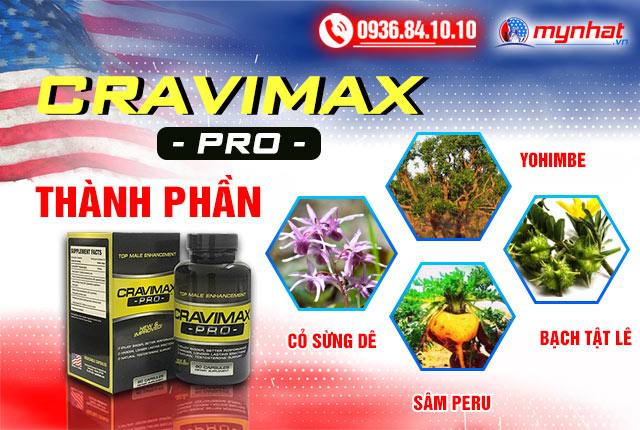 Cravimax Pro là sản phẩm hỗ trợ tăng cường sinh lý nam giới, được chiết xuất từ các thảo dược tự nhiên. Thành phần chính của Cravimax Pro bao gồm: