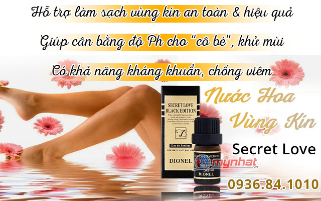 Dionel secret love Hàn Quốc là dòng mỹ phẩm rất nổi tiếng đối với các chị em phụ nữ được sản xuất dưới dạng nước hoa vùng kín. Sản phẩm được chiết xuất từ các thành phần thiên nhiên cùng các tinh dầu tự nhiên nên rất an toàn cho da, chỉ cần dùng 1 -2 giọt mỗi lần sẽ giúp hỗ trợ chị em làm sạch “cô bé”, mang lại hương thơm dịu nhẹ, quyến rũ hơn để chị em phụ nữ tự tin, thoải mái suốt cả một ngày dài.