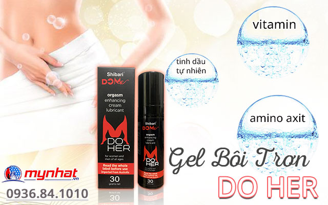 Do Her là dòng sản phẩm gel bôi có khả năng hỗ trợ làm hồng, se khít âm đạo, giúp kích thích điểm G và gia tăng những khoái cảm tình dục mạnh mẽ cho chị em phụ nữ. Sản phẩm này được chiết xuất từ các thành phần tự nhiên, an toàn với làn da nhạy cảm và giúp chị em dễ dàng đạt đến đỉnh cao khoái cảm cùng với những trải nghiệm, cảm giác đầy mới lạ trong chuyện chăn gối.