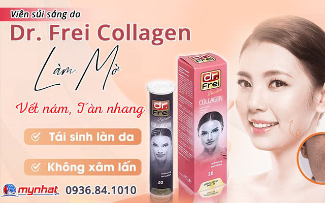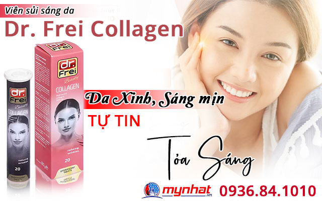 Dr. Frei Collagen là dòng thực phẩm bảo vệ sức khỏe có tác dụng bổ sung collagen cho cơ thể, hỗ trợ làm đẹp da và được sản xuất dưới dạng viên sủi. Sản phẩm này có chứa hàm lượng Collagen thủy phân tinh khiết bởi được chiết xuất từ cá biển sâu tự nhiên nên rất an toàn và không chứa chất tăng trưởng, rất tốt cho cơ thể.