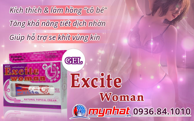 Excite Woman là sản phẩm gel bôi trơn gia tăng khoái cảm, kích thích ham muốn mãnh liệt cho nữ giới. Sản phẩm đem đến cho người dùng những khoái cảm thăng hoa, rạo rực cơ thể và ham muốn hơn về tình dục, ngoài ra thì sản phẩm này còn giúp ngăn tình trạng khô rát vùng kín ở chị em.