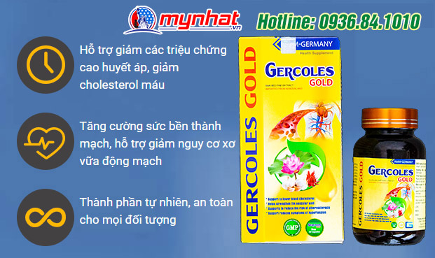 Một trong những lợi ích lớn nhất của Gercoles Gold là khả năng hỗ trợ giảm triệu chứng cao huyết áp. Người bị cao huyết áp thường gặp phải những cơn đau đầu, chóng mặt và căng thẳng. Sản phẩm giúp ổn định huyết áp, tạo cảm giác dễ chịu và thoải mái hơn cho người sử dụng.