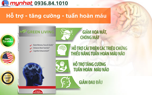 Green Living là sản phẩm hữu hiệu hỗ trợ tăng cường hoạt huyết, cải thiện quá trình tuần hoàn máu lên não não và giúp ngăn các biến chứng nguy hiểm của tình trạng thiếu máu não gây ra. Sản phẩm này giúp người dùng duy trì một tinh thần tỉnh táo, bộ não được minh mẫn hơn để làm việc, học tập hiệu quả và đạt năng suất cao nhất.