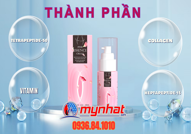 Collagen: Kích thích quá trình trao đổi chất của da, tăng cường độ đàn hồi và cải thiện độ căng mịn của da. Collagen giúp chậm quá trình lão hóa da, giảm tối đa nếp nhăn, thâm sẹo, và nám da. Nó còn đóng góp vào việc se khít và làm hồng vùng kín.