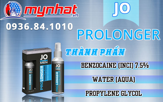 Chai xịt Jo Prolonger có chứa các thành phần có nguồn gốc tự nhiên được các chuyên gia chọn lọc cẩn thận đảm bảo an toàn cho người dùng, một số thành phần chính gồm: