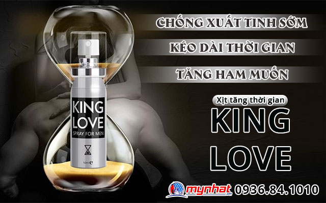 Chai xịt chống xuất tinh sớm King Love là dòng sản phẩm hỗ trợ sinh lý cao cấp, đã được chứng nhận an toàn Y Tế từ cục liên bang của Hoa Kỳ. Sản phẩm mang đến khả năng cải thiện tình trạng yếu sinh lý, ngăn chứng xuất tinh sớm vô cùng hiệu quả và giúp nam giới duy trì cuộc yêu như ý muốn, đem đến những khoái cảm mới lạ cho cả hai đảm bảo không làm cho các quý ông phải thất vọng.