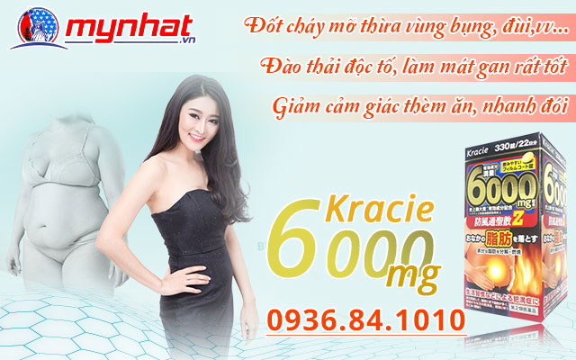 Kracie 6000mg là một dòng thực phẩm hỗ trợ giảm cân mới của công ty Kracie của Nhật Bản với hàm lượng lên đến 6000mg. Sản phẩm giúp người dùng tiêu hóa thức ăn tốt hơn, có khả năng tác động trực tiếp lên những mô mỡ tích tụ trong cơ thể, đặc biệt hiệu quả với các vùng bụng và đùi giúp cho bạn có thể nhanh chóng lấy lại thân hình thon gọn, săn chắc hơn.