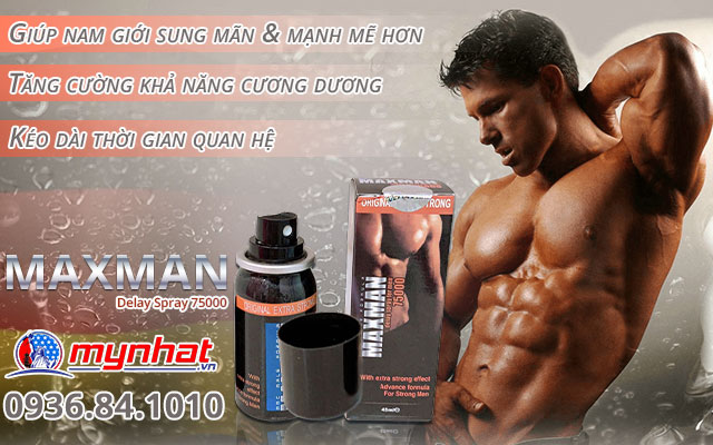 Sản phẩm hỗ trợ tăng cường sinh lý nam Maxman Delay Spray For Men 75000 chính hãng có giá là: 700.000đ. Khi mua hàng tại mynhat.vn bạn sẽ được thỏa sức chọn các sản phẩm chất lượng cùng giá thành tốt nhất và kèm theo ưu đãi: