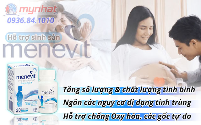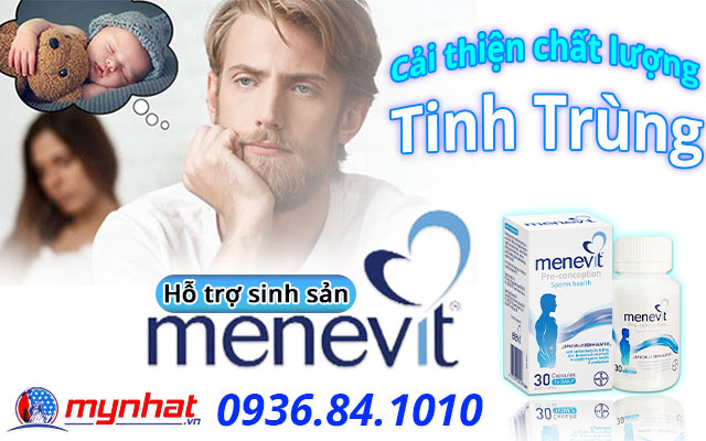 Menevit là sản phẩm hỗ trợ tăng chất lượng tinh trùng, giúp cho nam giới cải thiện khả năng sinh sản của bản thân. Sản phẩm được bào chế theo công thức hoàn hảo để có thể bổ sung các vitamin, dưỡng chất thiết yếu cho nam giới, hỗ trợ tăng số lượng và chất lượng tinh trùng một cách tự nhiên, cải thiện khả năng thụ thai tốt hơn, giúp làm giảm các nguy cơ dẫn đến hiếm muộn, vô sinh.