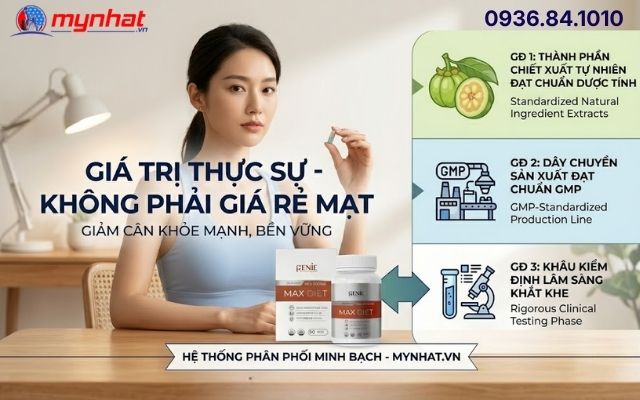 Tại hệ thống phân phối chính ngạch như mynhat.vn, mức giá luôn được niêm yết minh bạch và ổn định theo đúng quy định từ nhà sản xuất. Khi phân tích dưới góc độ kinh tế, việc đầu tư một khoản tiền xứng đáng ngay từ đầu cho sản phẩm chính hãng thực chất là một sự tiết kiệm thông minh. Hãy thử làm một phép so sánh: Thay vì dùng các loại thuốc rẻ tiền khiến cơ thể mệt mỏi đến mức phải đi truyền nước hoặc gây ra các bệnh lý về dạ dày cần điều trị tốn kém, việc chọn mua Max Diet Genie chính hãng giúp bạn giảm cân trong trạng thái khỏe mạnh, tỉnh táo. Bạn không mất thêm chi phí cho các rủi ro sức khỏe, và quan trọng nhất, kết quả đạt được là thật và bền vững.