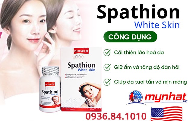 Spathion White Skin là sản phẩm hỗ trợ trắng da tự nhiên với thành phần glutathione hấp thu cao và có tác động đồng đều lên sắc tố da toàn cơ thể, giúp mang lại độ hiệu quả trắng mịn bền lâu hơn. Ngoài ra sản phẩm này hỗ trợ làm mờ các vết thâm, nám và đem lại làn da trắng sáng, khỏe mạnh tự nhiên.
