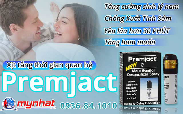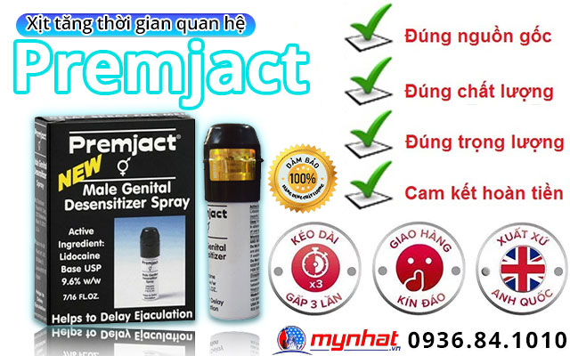 Premjact là dòng sản phẩm xịt tăng cường sinh lý cao cấp đến từ Anh Quốc, đảm bảo chất lượng và an toàn với cơ thể. Sản phẩm giúp nam giới kéo dài thời gian quan hệ hơn 30 phút, tăng khả năng cương dương, ham muốn và chống tình trạng xuất tinh sớm rất hiệu quả.