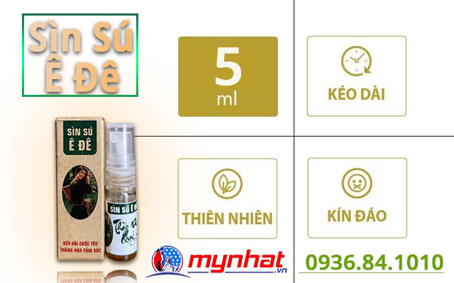 Sìn Sú Ê Đê dạng nước xịt có công dụng kích thích ham muốn tình dục ở nam giới, trì hoãn thời gian đạt cực khoái, chống xuất tinh sớm, tăng sức chịu đựng và kéo dài thời gian quan hệ. Sản phẩm có nguồn gốc từ Việt Nam nên rất hữu hiệu cho cơ địa người Việt, với các thành phần tự nhiên đem đến cho nam giới sự tự tin trong tình dục, sẵn sàng trong mọi cuộc yêu và luôn chiếm thế chủ động khiến cho nàng mê mệt.
