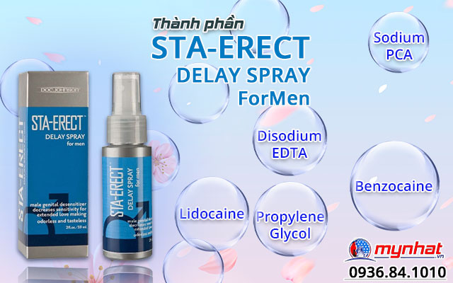 Sta-Erect Delay Spray là sản phẩm hỗ trợ kéo dài thời gian quan hệ của hãng Doc Johnson được nghiên cứu và phát triển trong một thời gian dài. Sản phẩm với thành phần chính gồm Benzocain 7.5% và Lidocain 10% đem đến khả năng tăng sức bền, sức chịu đựng, hỗ trợ kéo dài thời gian một cách tự nhiên và làm giảm độ nhạy cảm ở đầu cậu nhỏ để cuộc yêu thêm dài lâu cùng nhiều cảm xúc mới lạ.