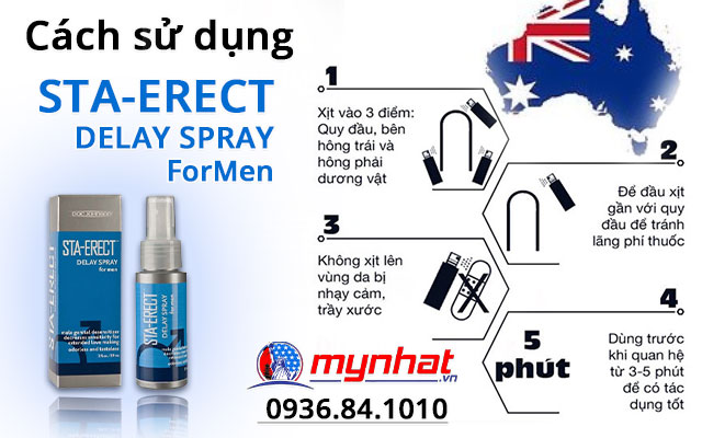 Sản phẩm Sta-Erect Delay Spray chính hãng đã có mặt tại website: mynhat.vn và được chúng tôi bán với mức giá ưu đãi là: 1.250.000đ.