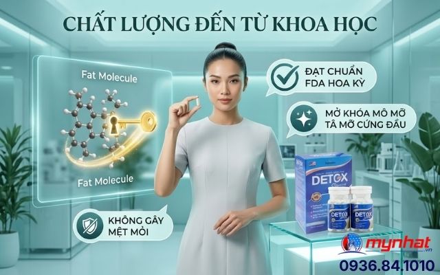 Với cơ chế Detox (thanh lọc) kết hợp Slimming (đốt mỡ), viên uống giúp phá vỡ các liên kết mỡ cứng này, đưa chúng trở lại trạng thái lỏng để dễ dàng đào thải ra ngoài. Nếu bạn đã từng thất vọng với nhiều phương pháp, đây chính là lúc để thử một giải pháp chuẩn Mỹ.