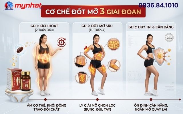 Giai đoạn đốt mỡ sâu: Từ tuần thứ 4 trở đi, nồng độ hoạt chất trong máu đạt mức ổn định, quá trình ly giải mỡ tại các vùng bụng, đùi, bắp tay diễn ra mạnh mẽ nhất.