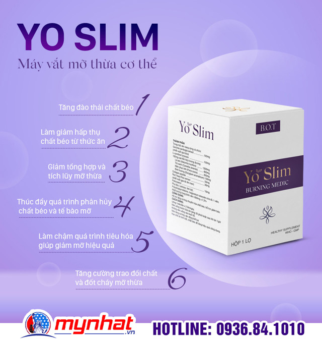 Với những lợi ích vượt trội, thành phần tự nhiên và công nghệ tiên tiến, viên uống Giảm cân Yo Slim thực sự là một lựa chọn hàng đầu cho những ai muốn lấy lại vóc dáng và sức khỏe. Hãy bắt đầu hành trình giảm cân của bạn ngay hôm nay với Yo Slim, và tự tin hơn trong cuộc sống hàng ngày! Đặt hàng mua ngay sản phẩm tại website Mynhat.vn hoặc liên hệ đến Hotline: 0936.84.1010 để được tư vấn miễn phí